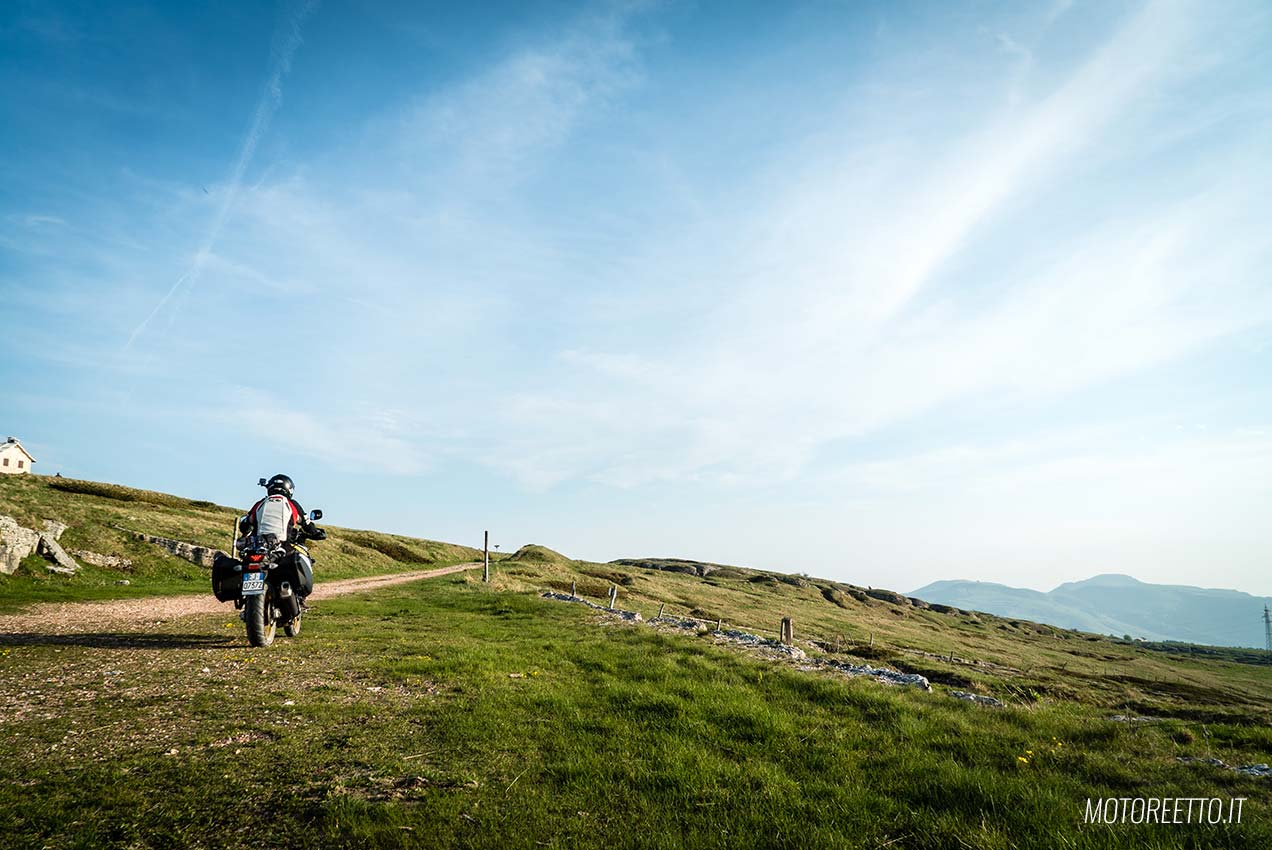 La Trans-Lessinia: la più bella strada bianca è la SP14. Sì hai capito bene, la Strada Provinciale 14! Lo so che prima o poi qualcuno arriverà ad asfaltarla, ma sarà un vero crimine. La Translessinia è bellissima perché attraversa placidamente la parte più alta dei Monti Lessini collegando le varie malghe d’alpeggio. Di fatto è proprio la strada fatta per gli allevatori che qui da sempre passano il periodo estivo con le loro mucche. Alcune malghe sono poi diventate dei rifugi per gli escursionisti (come Podestaria o Malga Lessinia) ma questo ha permesso di mantenere viva la strada e l’area oltre che le tipiche strutture. Non andare sulla Translessinia in grossi gruppi e soprattutto vai piano e rispettoso come solo un ospite dev’essere, non è una strada che appartiene a noi motociclisti, appartiene alla dura vita dell’alpeggio. Ma è il modo più bello per arrivare al Passo delle Fittanze!
